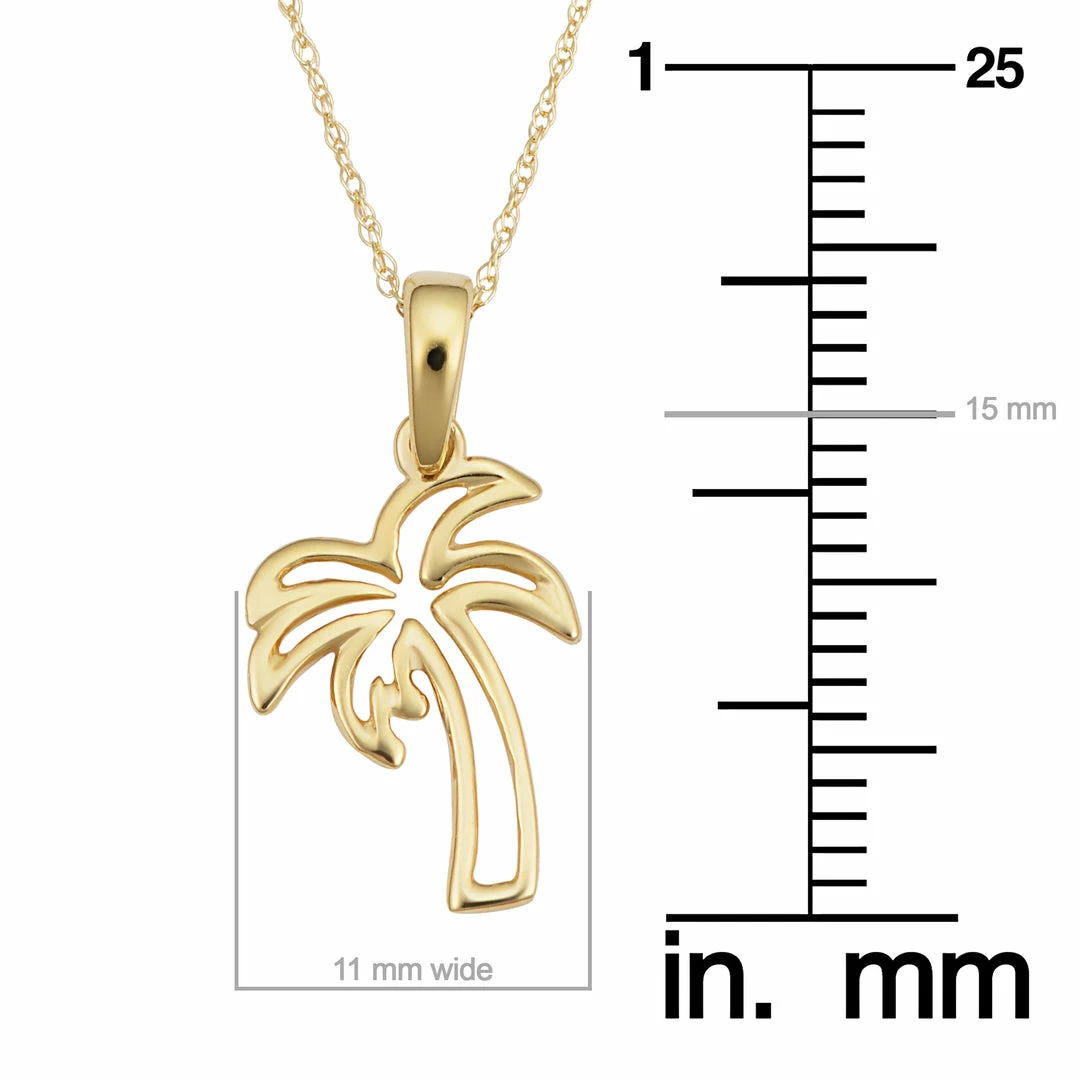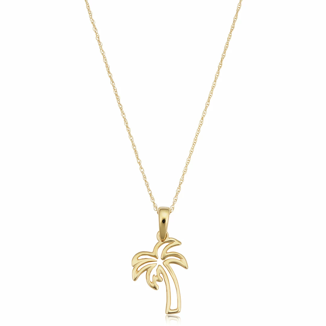 - SMALL GOLD PALM TREE PENDANT that is made in Italy and dangles on a 14k yellow gold rope chain necklace