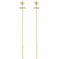 This stylish pair of gold earrings might be the essence of simplicity, but the undeniable elegance and shine of the yellow gold in this pair of earrings beams femininity and charm. This versatile pair of gold bar earrings is always appropriate for any occasion.