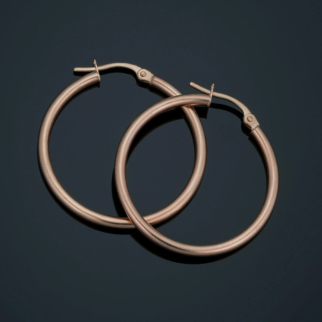 Fremada women 10k Rose Gold Polished Hoop Earrings (2×25 mm)