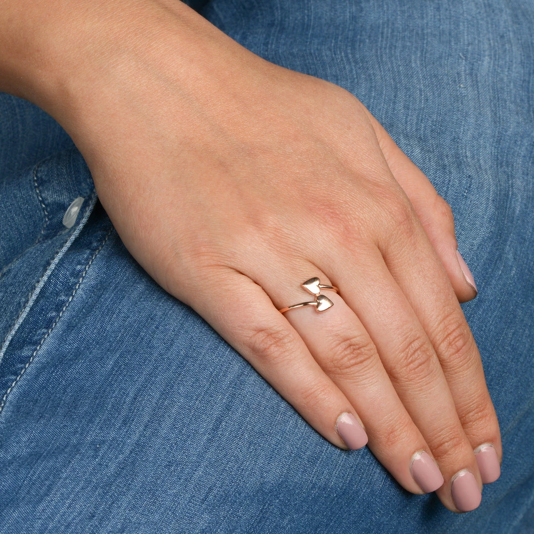 - EVERYDAY ROSE GOLD HEART RING. Modest yet charming, this rose gold double heart bypass ring will make an excellent addition to your casual and formal attires and it will add shine, elegance, and feminine charm to everyday look
