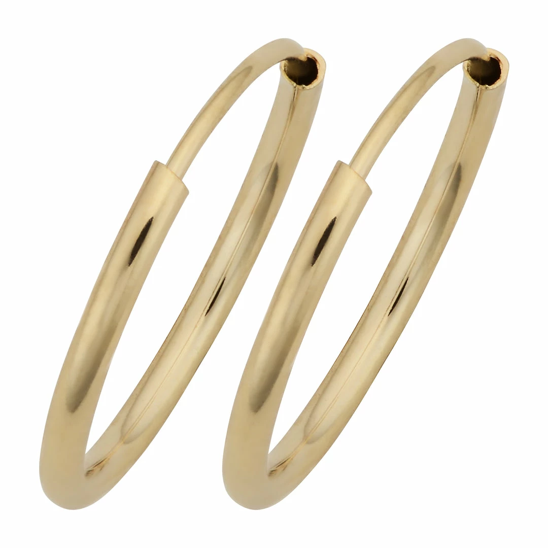 Fremada women 14k Yellow Gold 1mm Thick 12mm Round Tube Endless Hoop Earrings