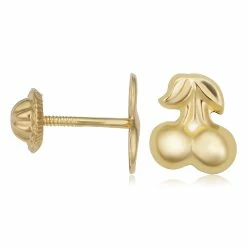 - COMFORTABLE GOLD JEWELRY FOR EVERYDAY, ALL DAY USE. These gold cherry stud earrings offer simple elegance that will adorn casual attire and will match other gold jewelry such as necklaces and bracelets, and this pair of gold stud comes with screw back closure, which offers security and comfort to the wearer