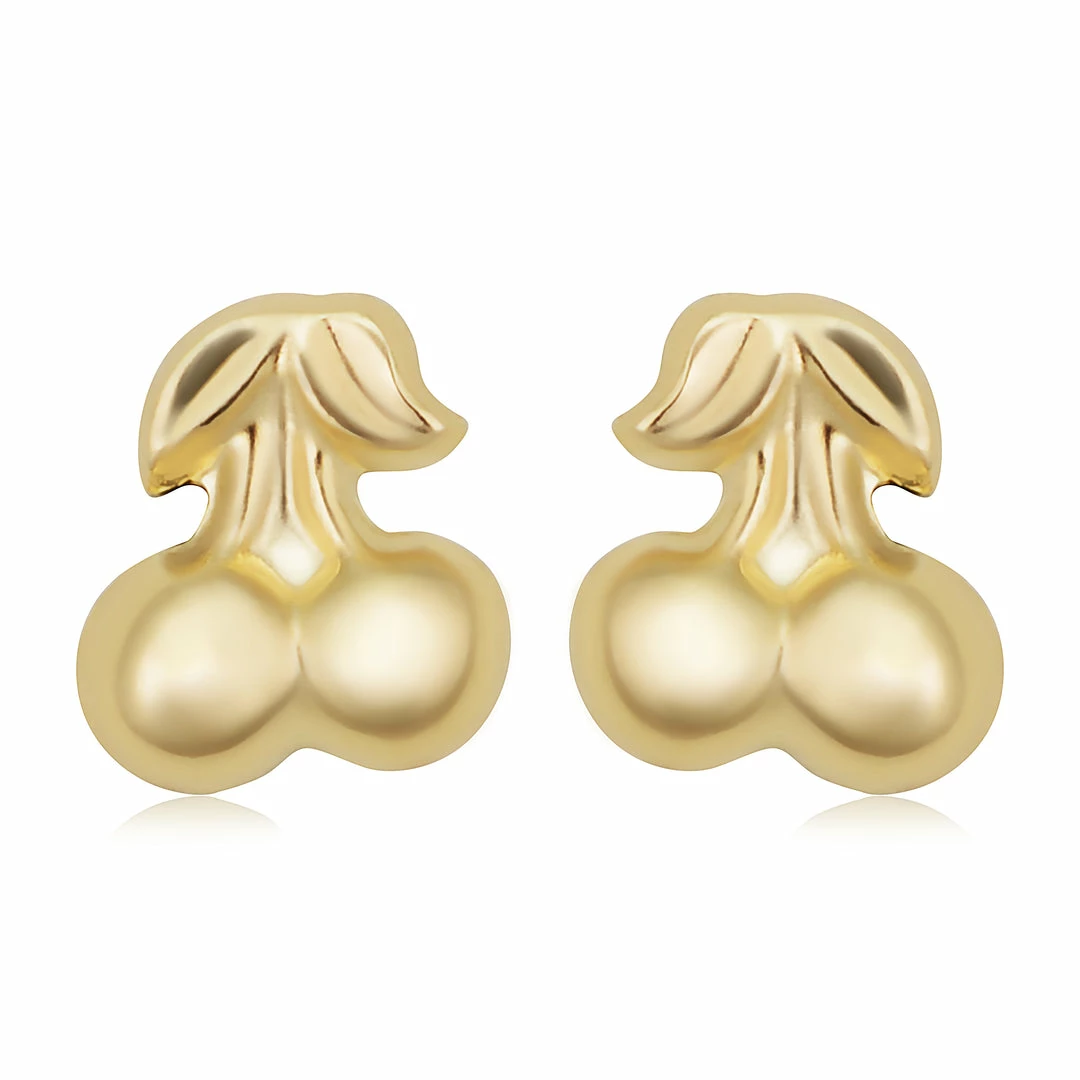 - ELEGANT, CHARMING, STYLISH GOLD JEWELRY. Gold cherry stud earring sis showcased in this lovely gold jewelry and it offers the brilliant shine of high polish finished gold to perfection, adding to its feminine appeal