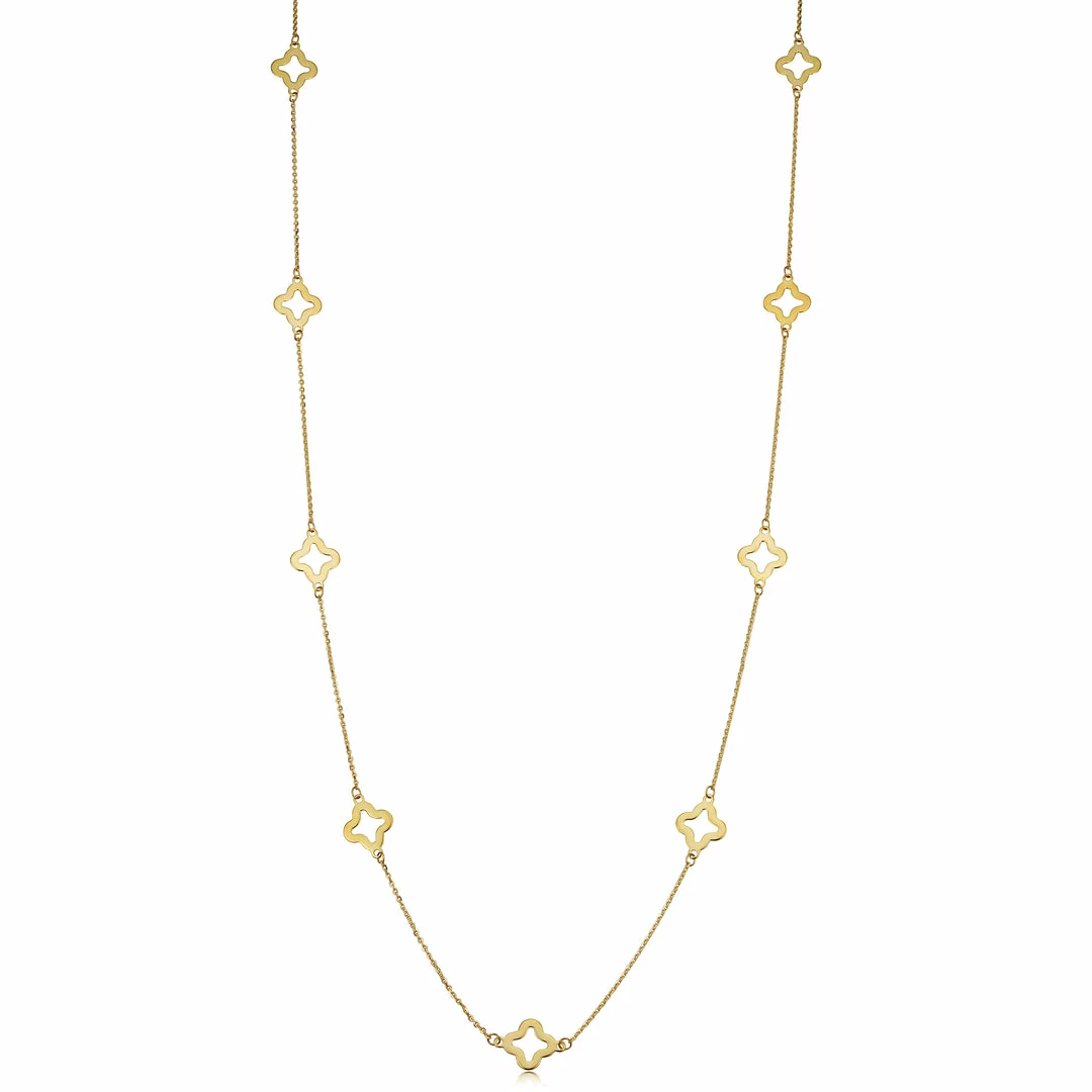 Fremada women 14k Yellow Gold Clover Flower Station Necklace (26 inch)
