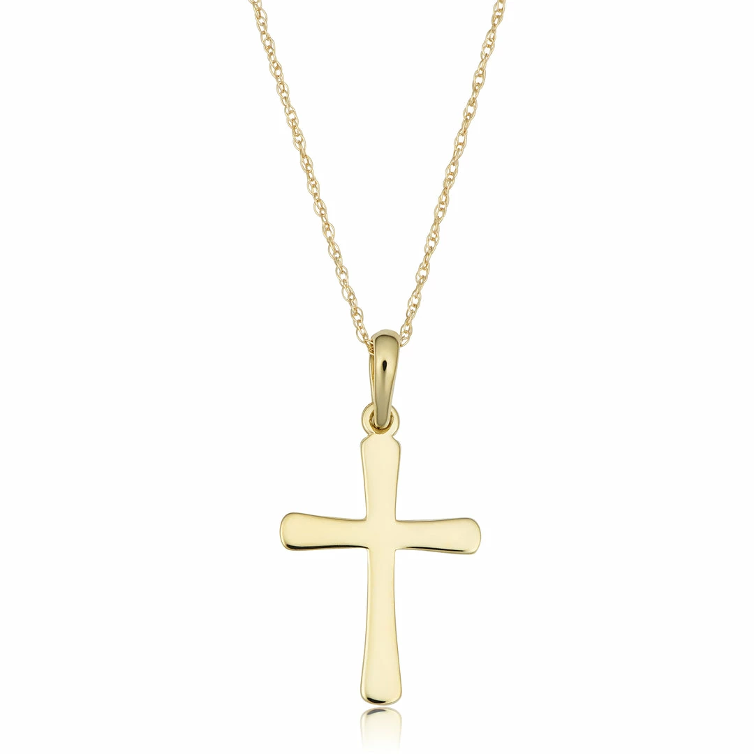 - SIMPLE, ELEGANT, EVERYDAY GOLD JEWELRY FOR GIRLS TO ADULTS. A petite gold cross pendant is showcased in this 14k gold necklace and the gold cross pendant is completed with a gold rope chain necklace that secures with a spring ring clasp