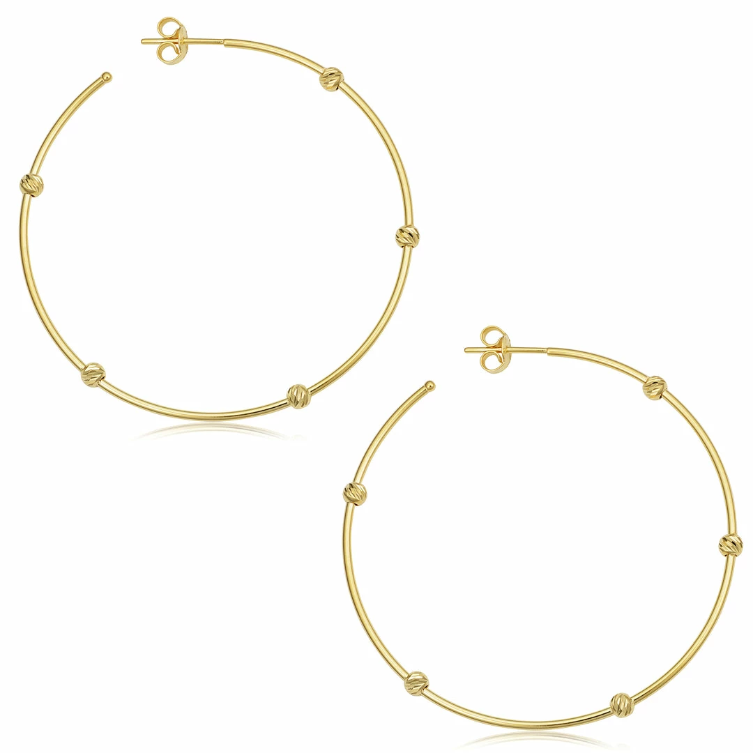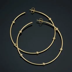 - BOLD, ELEGANT, FASHIONABLE GOLD JEWELRY FOR WOMEN. These large gold hoops showcases a gold bead station and open hoop earring style and these gold earrings offers a brilliant shine as it feature high polished tube hoop and diamond-cut finished gold beads