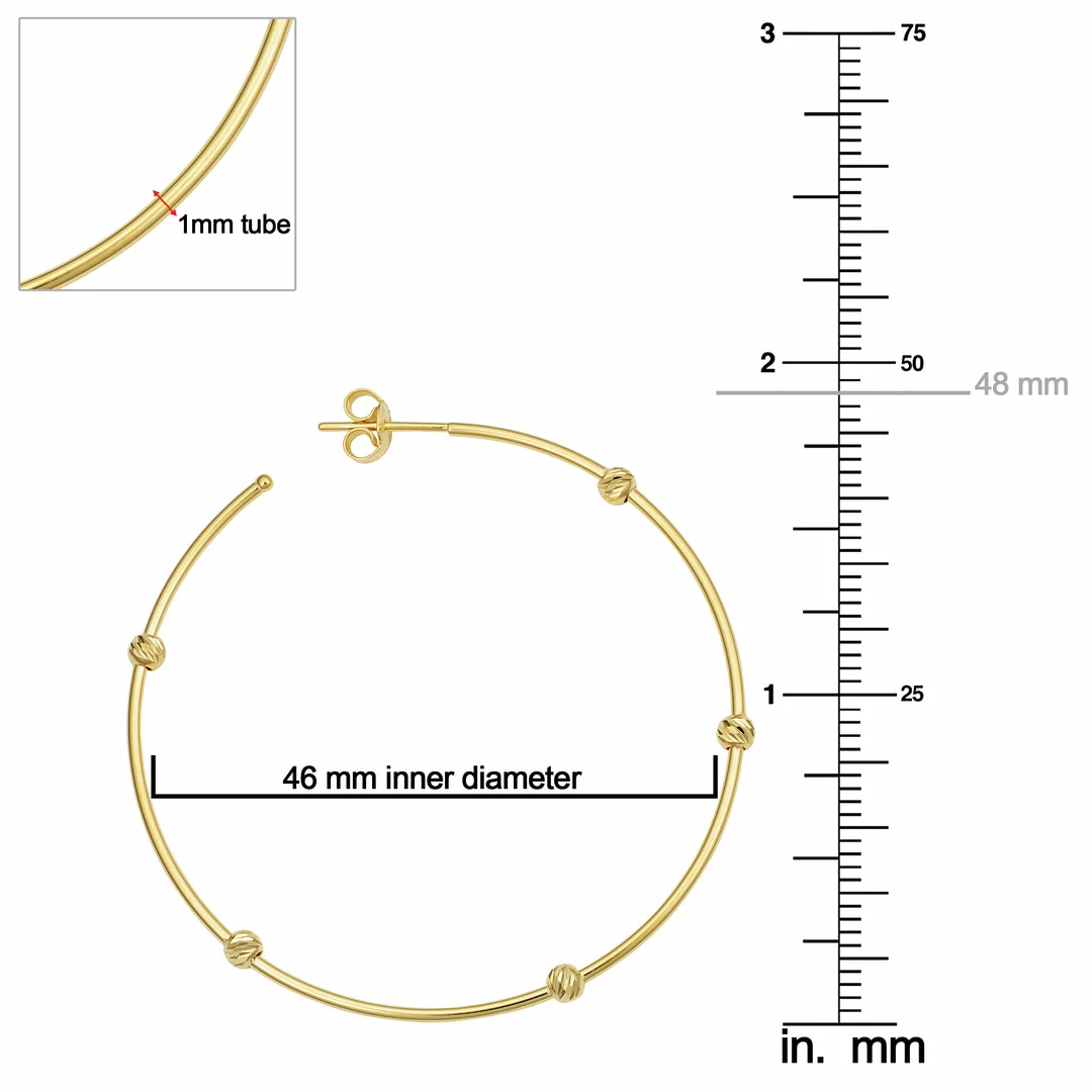 Yellow gold is a timeless classic that will never go out of style and always add elegance to every style, and hoop earrings are always fashionable and feminine. This gold jewelry for women showcases a gold open hoop earring style with gold bead station that offers a brilliant shine due to its diamond-cut finish.
