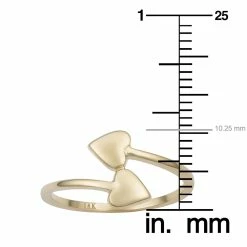 A charming gold jewelry for girls, teens, and adults that showcases a gold double heart display in a gold bypass ring style. This gold ring features the radiance of high polish finished 14k yellow gold or 14k rose gold to perfection.