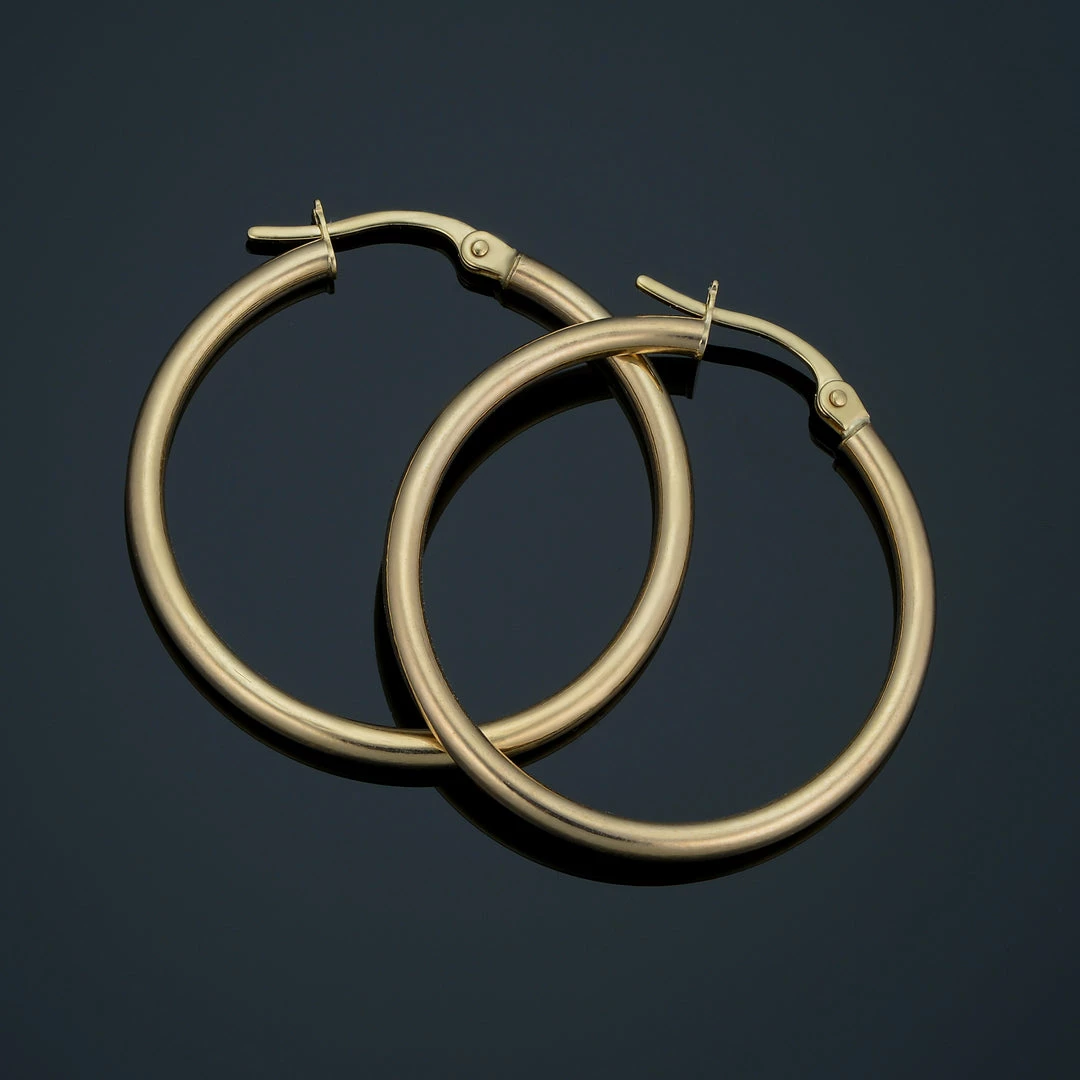 Fremada women 14k Yellow Gold Hoop Earrings (2×25 mm)