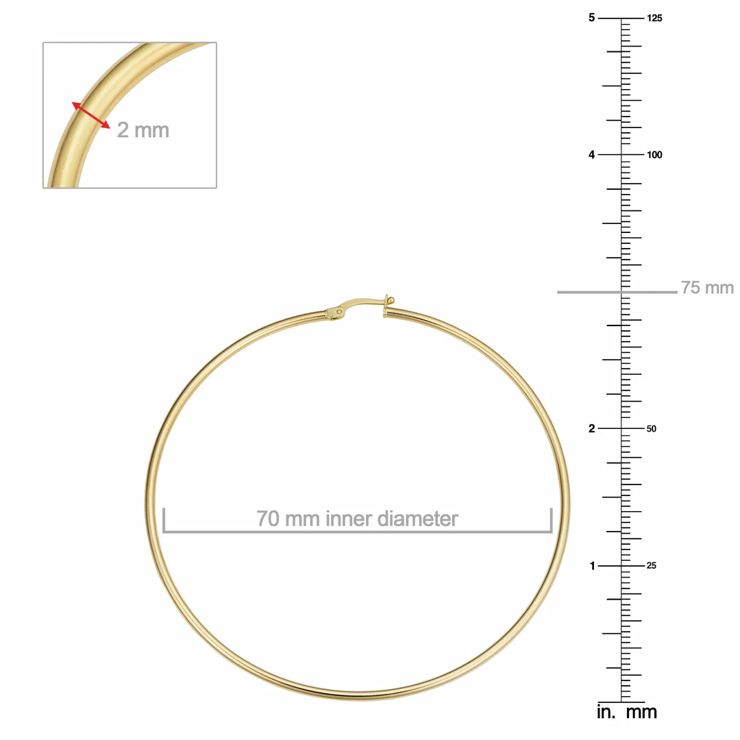 Fremada women 14k Yellow Gold Large Hoop Earrings (2x70mm)