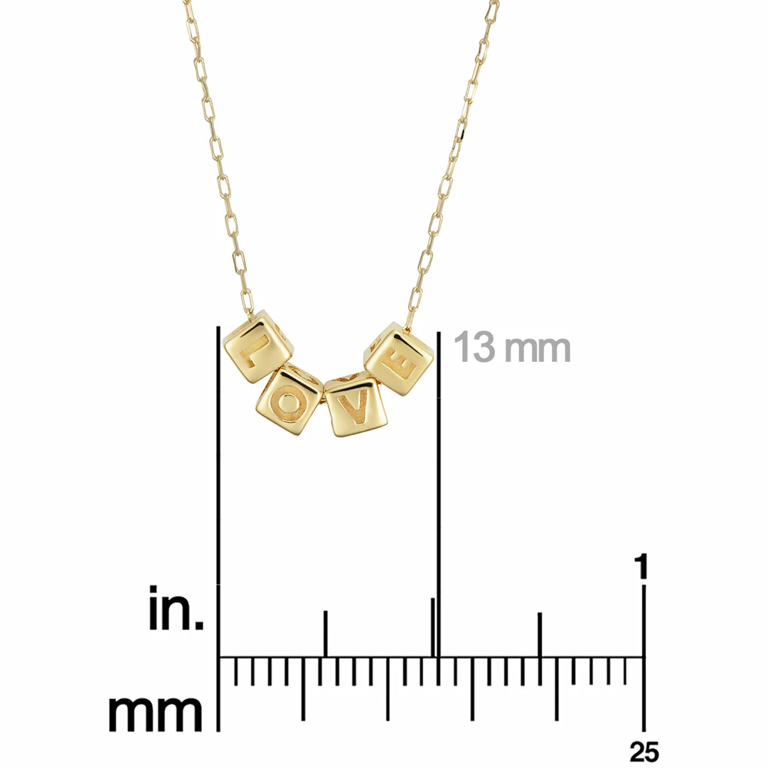 Fremada women 14k Yellow Gold Love Letter Block Necklace (adjusts to 17 or 18 inch)