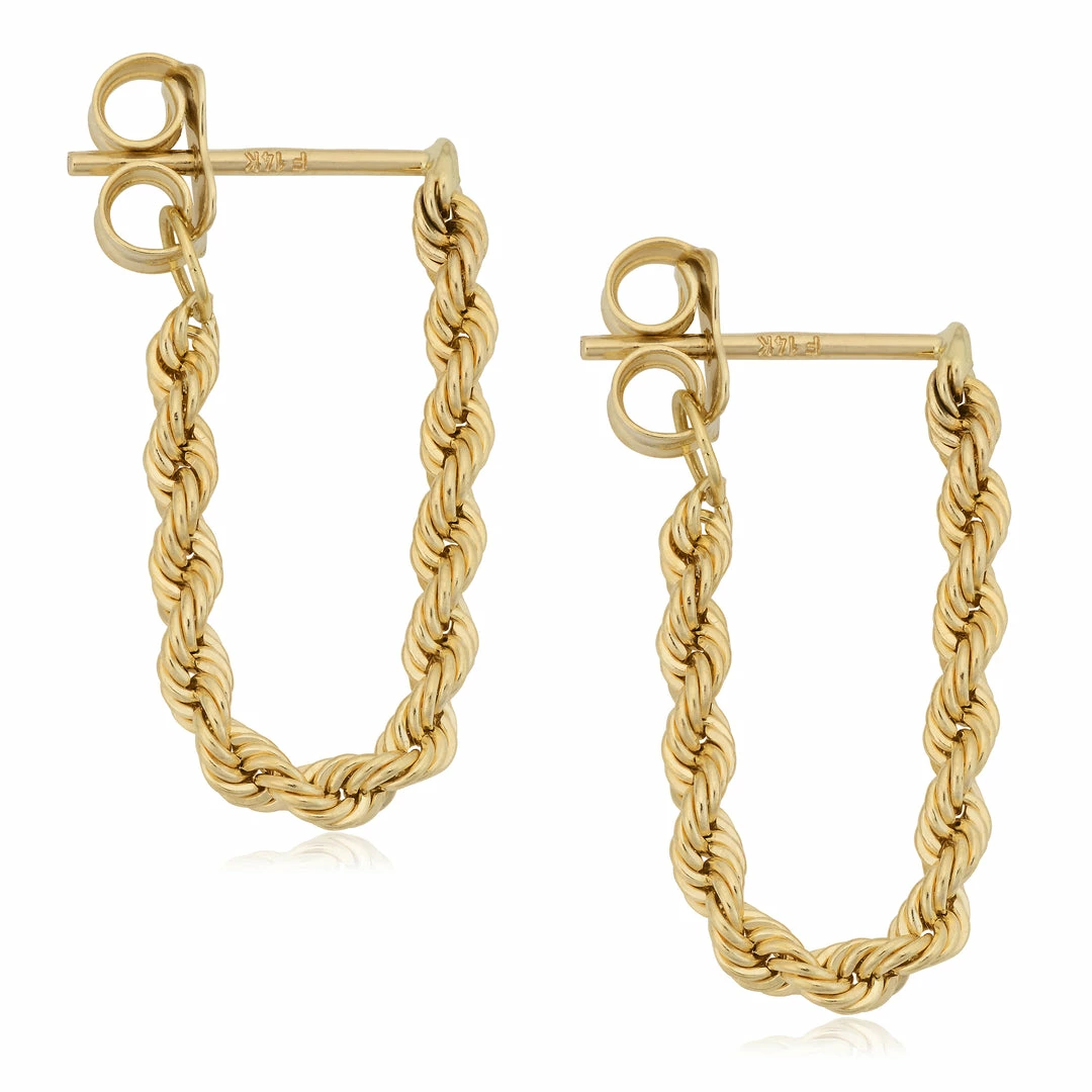 Fremada women 14k Yellow Gold Rope Chain Earrings