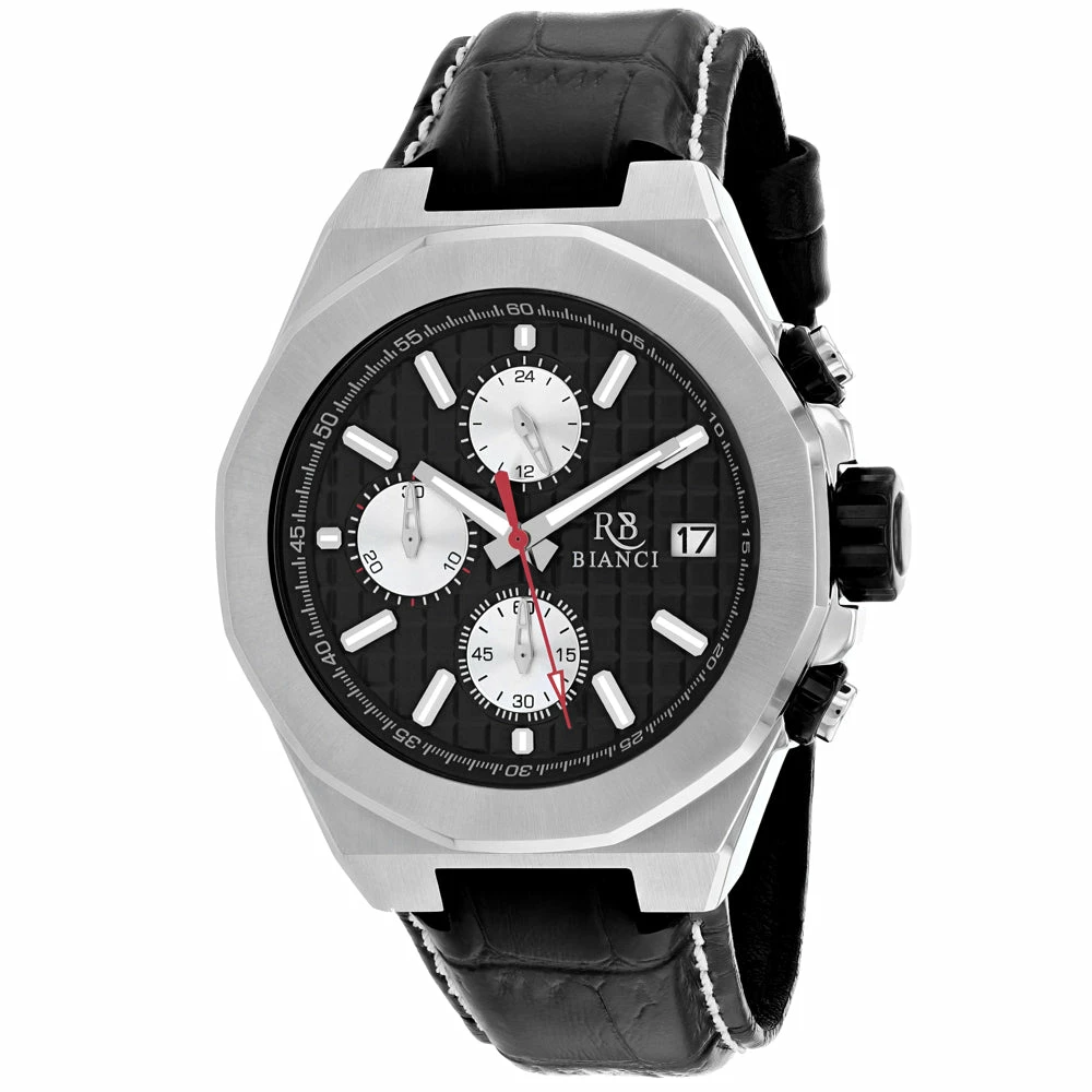 Stainless steel case, Leather strap, Black dial, Quartz movement, Scratch resistant mineral, Water resistant up to 5 ATM – 50 meters – 165 feet