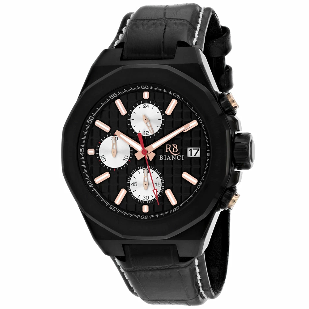 Stainless steel case, Leather strap, Black dial, Quartz movement, Scratch resistant mineral, Water resistant up to 5 ATM – 50 meters – 165 feet