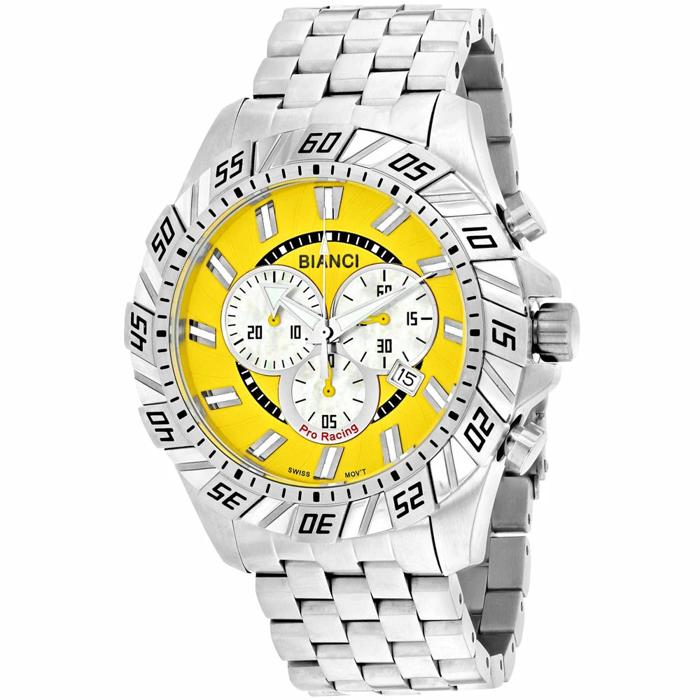 Stainless steel case, Stainless steel bracelet, Yellow dial, Swiss Quartz movement, Scartch resistant mineral, Water resistant up to 10 ATM – 100 meters – 330 feet