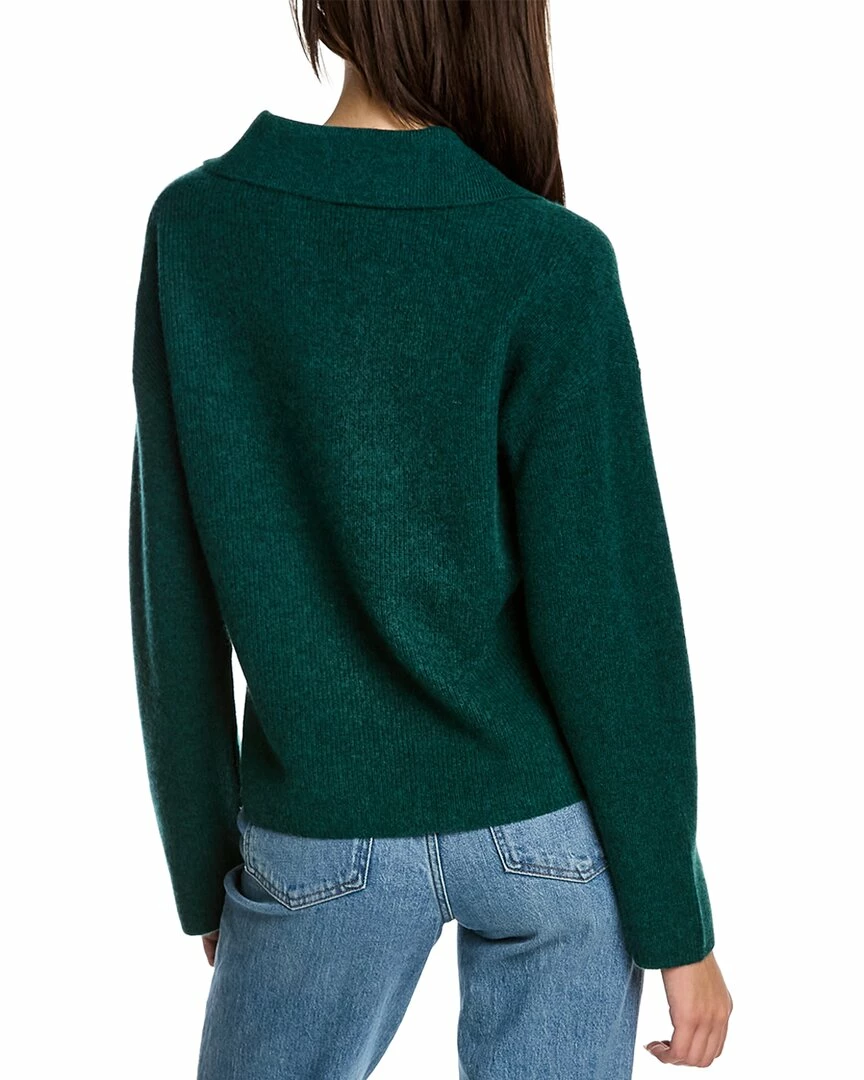 - Design Details – Ribbed Knit, Split Neckline With Johnny Collar And Dropped-Shoulder Sleeves