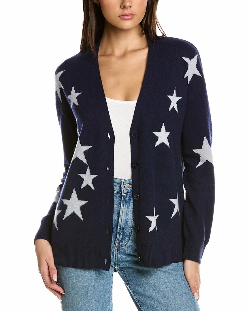 women Philosophy Star Intarsia High-Low Cashmere Cardigan